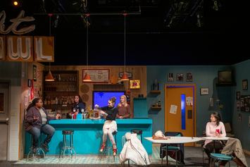 Furniture and props for UW-Madison's University Theatre production of Twilight Bowl by Rebecca Gilman (April 2019). Taking place in a small-town Wisconsin bowling alley, the set features a custom bowling pin table and a functioning beer tap behind the bar.